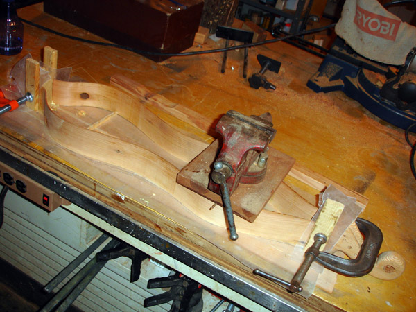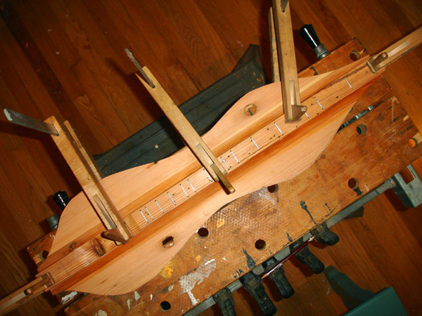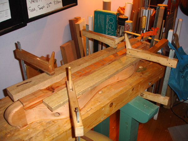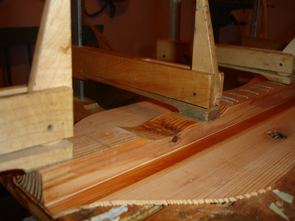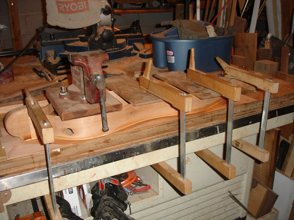 Top being attached. My violin-size spool clamps don't fit, so I'm doing it the old fashioned way.