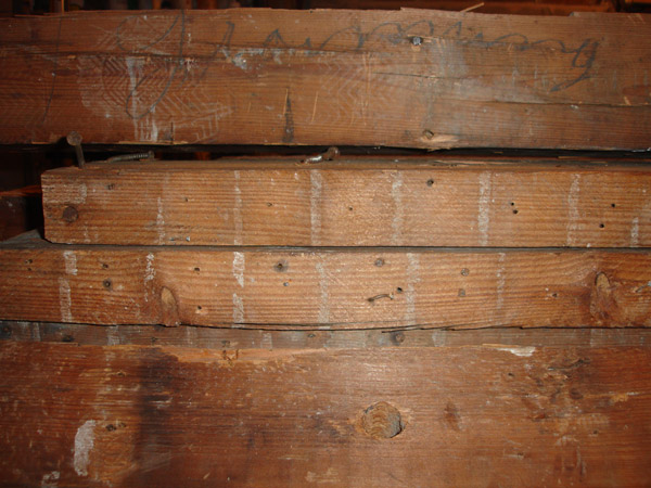 In several places there is writing in pencil in a florid script which likely is of the original builder