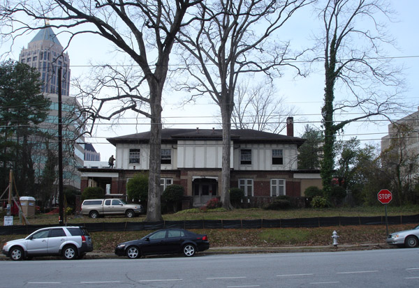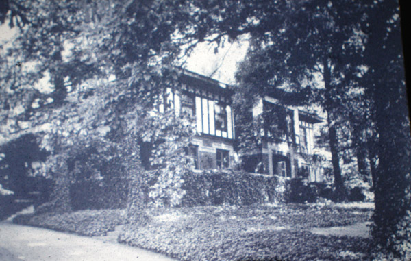 This is the earliest photo I found of the house, at the Emory University Department of Archeology slide library. It is undated, however I was later to find out it was photographed from a book entitled "Georgia Homes and Landmarks", published in 1929. Another book, "Georgia Homes and Notable Georgians", published by M.M. and A.H. Howard in 1941, has a similar image with the following copy: "Atlanta is a city of beautiful homes, and one of the loveliest is that of Mr. and Mrs. Henry L. de Give. The house is set well back from the street, beautifully framed by luxurious oak trees. The architecture of the house is of English origin, using red tapestry brick, a light plaster, and deep brown wood to provide a contrast in color. The brick walls and terraces are picturesquely covered with English Ivy. Ivy is also the theme for a delightfully shady garden on the north side of the house. In this garden the ivy is supplemented by many shrubs, among which are rhododendrons, mountain laurel, and boxwood. The ivy garden is completely enclosed by an artistic wrought iron fence with lace-like, hand wrought iron gates. Beyond this is the rose garden which abounds with many varieties of beautiful roses. The de Give family has been outstanding in Atlanta since the days of the Civil War, and has contributed widely to the building and advancement of the city. The patriarch of the family, Laurent de Give, was sent by King Leopold of Belgium to this country before the Civil War to establish trade relations between the southern states and Belgium. He served as Counsel for fifty years and was decorated four times by his monarch. Mr. de Give never relinquished his Belgium citizenship. At his death in 1910, his son Henry was appointed Consul, and has held this position since that time. Mr. and Mrs. Henry L de Give have a daughter and four sons: Mrs. Marshall