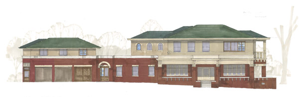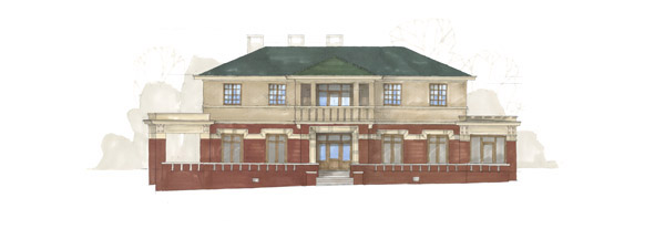 Two rendered view of the remodeled concept. Drawing from the more beaux-arts aspects of the original design: The polychrome brickwork, symmetry, heavy entablature and attics, etc. The imperative was keeping the addition to the rear and fixing the architectural "mistakes" of previous renovations while retaining the strongest features of the original design. +++++ I am naming this project after the DeGive family, the first family to inhabit the house, from 1911 to the end of the 1950's. I've decided to make a lap dulcimer out of it because, besides being a simple instrument that is more likely to be successful made entirely out of pine, it is an Appalachian instrument that at the time period this house was built was just coming to the consciousness of the urban public. In fact I am going to use as my pattern an instrument which was collected by the Smithsonian at this time. It would have been quite possible that the DeGive children would have had mandolin, banjo, and even dulcimer as part of their musical amusement.