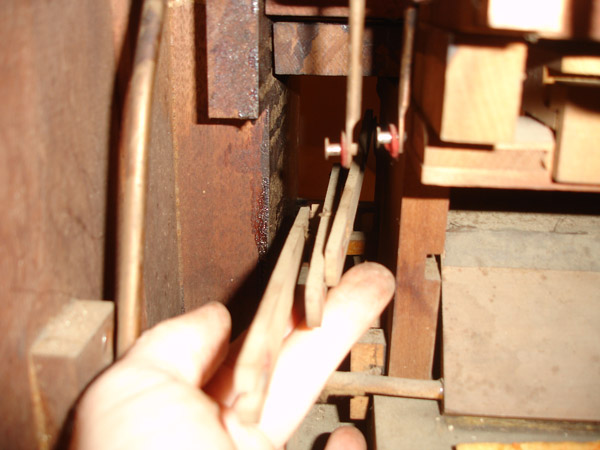 Showing linkages between stops and reed assembly