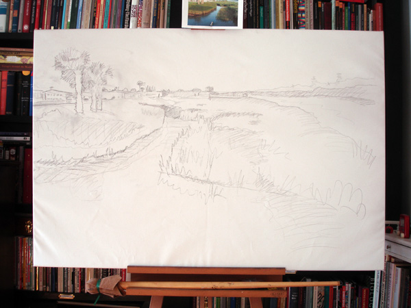 Cartooning the image with graphite on the canvas