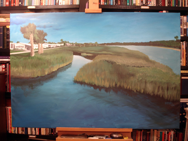 The completed painting with the final detail on the buildings +++++ Funny.