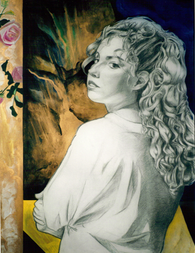 Detail from 'Audra D'anne Reeves', 74"x30", 1991 'Spring' (Stephanie Zarin), 42"x34", acrylic, goauche and graphite
