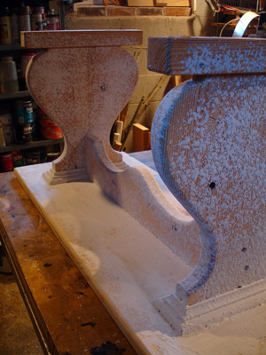 Working on a prop bench for this year's church play. I'm experimenting with spray-on drwall texture to create a stone-look surface.