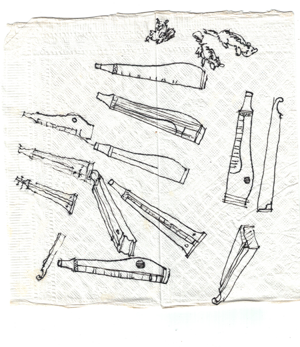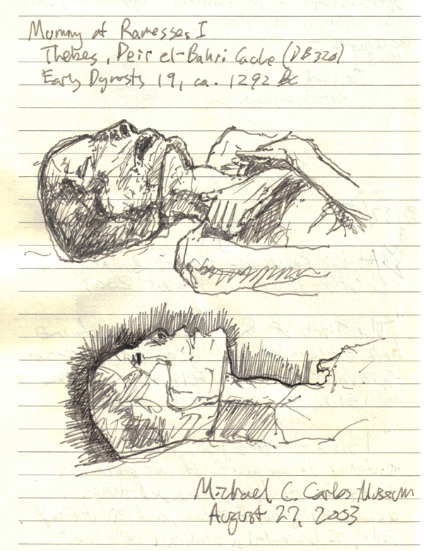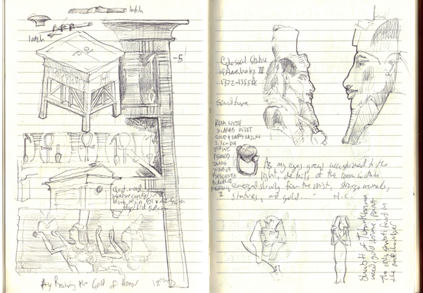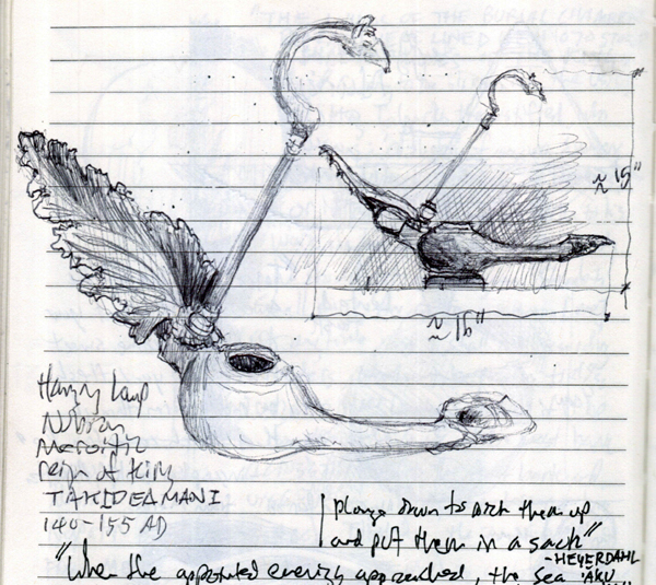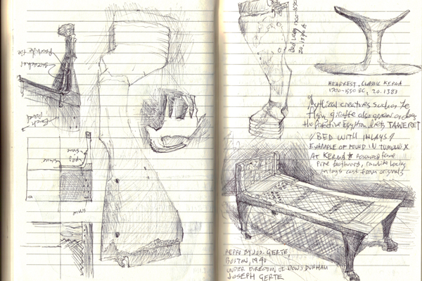 really interested in what I was sketching. Pick your pen well. Here we have some serious bleedthrough on objects from an exhibit of Nubian art at the Carlos museum . . .description to come. . .