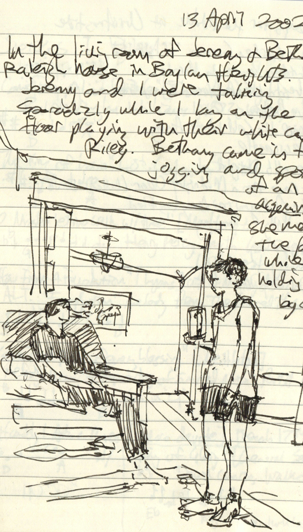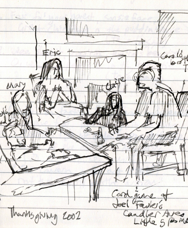 The most interesting sketches are not always the best looking. These two moments in time from 2002 caught a family poker game and a visit to my cousin Jeremy's house in Raleigh. Had to work quickly to capture the action.