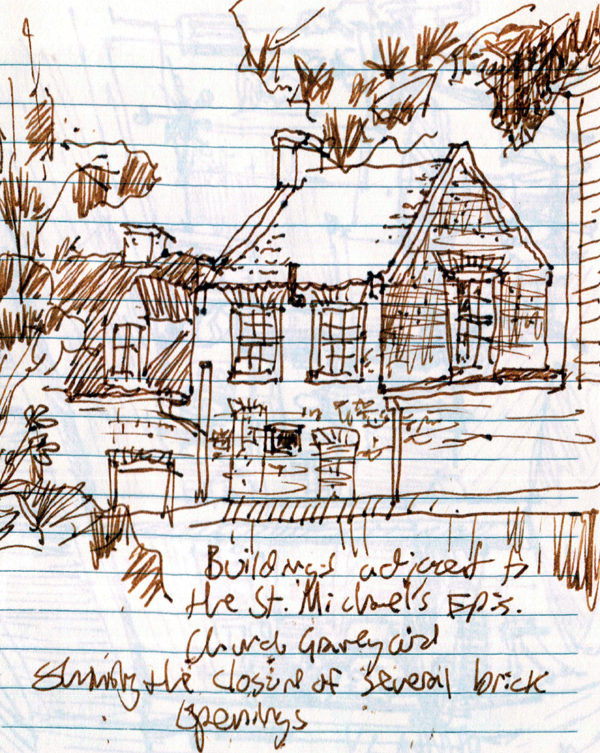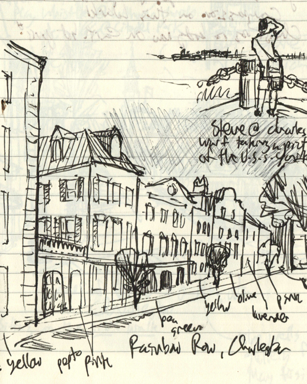 From a Charleston trip with my cousin Steve. (left) I was interested in how a small stone house adjacent to the graveyard we were in had several of its openings closed in over the years. (right) On "Rainbow Row" I was wanting primarily to remember the colors.