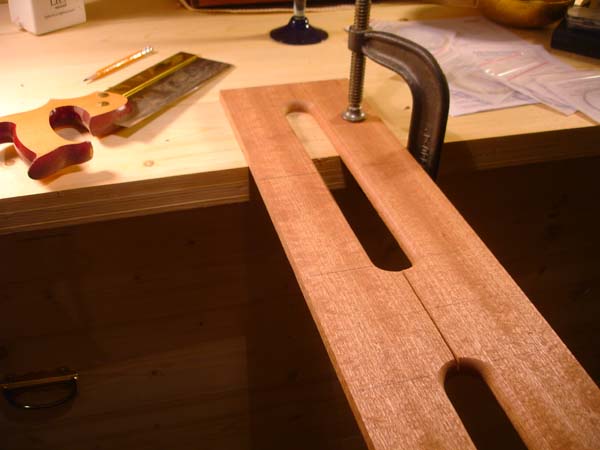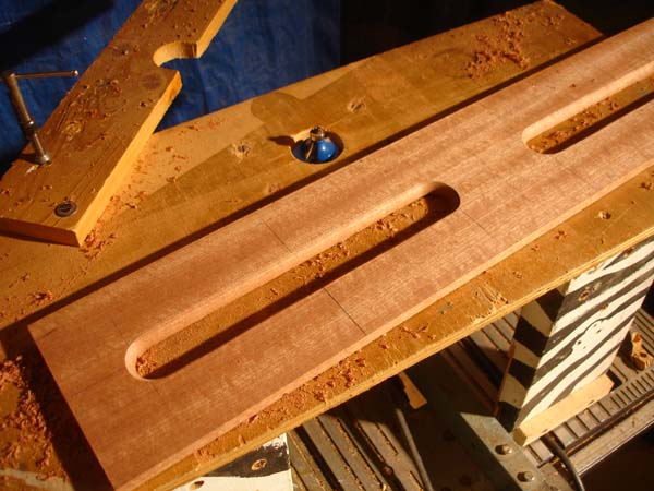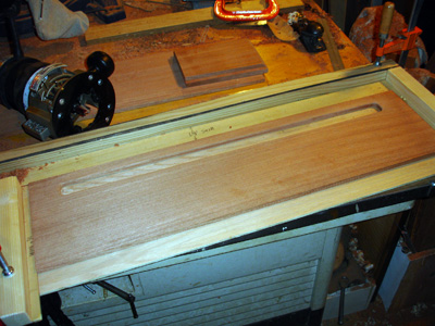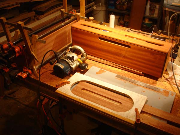 Routing the sound hole slot and clamping up the first carcus ++++++