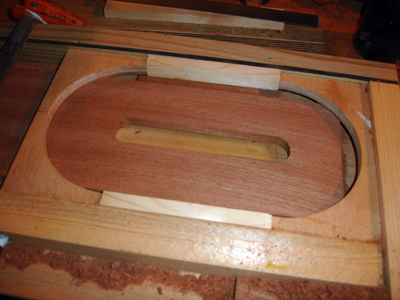 Progress on the Stockhausen slit drums. The top plate is routed, shaped, then the slot sawn to create the two 'tongues'. ++++++ Tuesday, September 24, 2013
